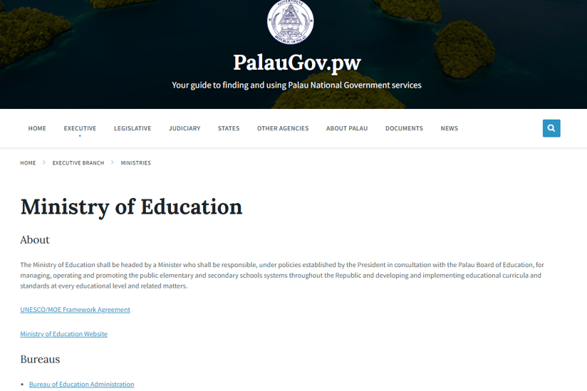 • A instituição é reconhecida por uma autoridade estatal competente (Ministério da Educação de Palau).